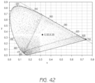 FIG. 39 is a chromaticity diagram for the filter with the spectral absorptance profile shown in FIG. 37 .
