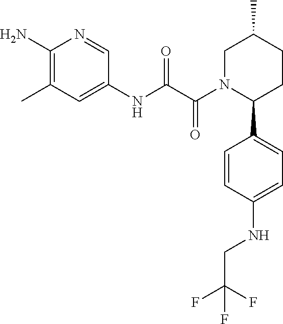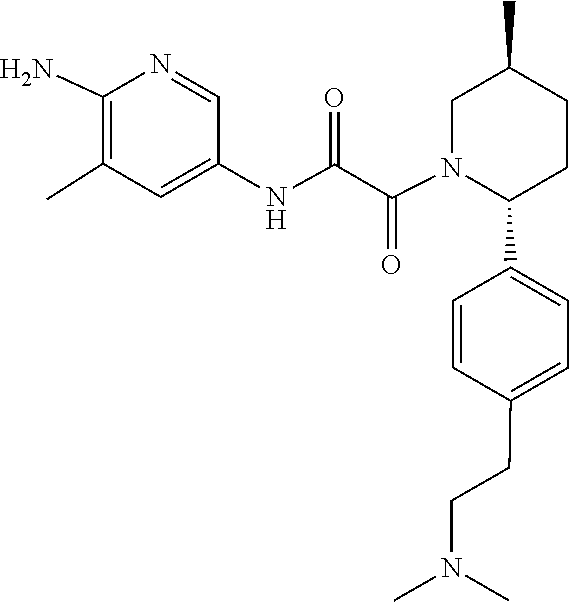- (B)2-(2-(4-(2H-tetrazol-5-yl)phenyl)-5-methylpiperidin-1-yl)-N-(5,6-dimethylpyridin-3-yl)-2-oxoacetamide or any of its enantiomers or diastereomers;
