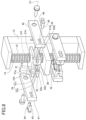 Accordingly, the lower pick plate 22 is capable of moving up and down along the guide rod 14 while being maintained in a horizontal position. Furthermore, the hole 22 f is smaller than the outer diameter of the middle coil spring 17 so that the upper end of the middle coil spring 17 contacts the bottom face of the lower pick plate 22.