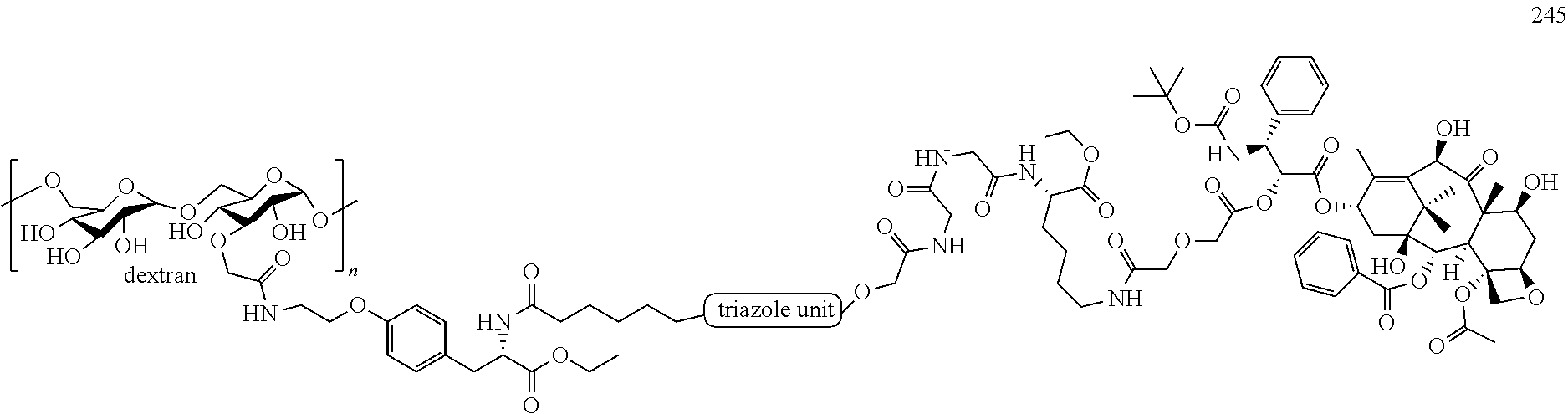 On the other hand, the studies showed that as the molecular weight of polysaccharides increases (for example, average molecular weight is above 25 k Dalton), it is expected that the tumor targeting of these dual conjugates will be further improved, and the dual conjugates in the present invention may exhibit their in vivo enhanced anti-tumor effects and safety than their original drugs.