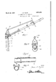 ed at its lowerend as at 32 to the upright 8 and this strap inclines rearwardly and terminates in alinement with the upstanding ears 33', 34,0n the upper ends of thearms 29, 30. r