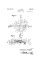 When the slides 14 move inwardly from the position of Figure 2, the crutches 20 first move inwardly, the pivot pins 24 moving inwardly in the slots 25. This inward movement of the crutches 20 brings the crutches against the outer ends of the stops 26, and as the inward movement of the slides 14 continues, the crutches 20 tilt, on the outer ends of the stops 26, as fulcrums, and the yarn or twine is discharged from the reel. As the crutches 20 tilt in the direction of the arrow A in Figure 2, the pivot point 23, moves in an arc, the center of which is the pivot element 21, and during this movement, the pivot pins 24 in the inner ends of the links 22 can move outwardly in the slots 25 of the stops 26. A reverse movement of the disk 11, by means of the arm 28, will restore the parts to the positions of Figures 3, 4: and 2.