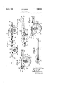 - Brake meansengaging the ground is disclosed in Fig. 6, in which I show a wheel 120 mounted on the shaft 21, this wheel 120 having a series of lugs 121 formed on the periphery thereof adapted to be engaged by a pawl 122 which is mounted on a lever 123 and is therefore adapted to be moved into one of the spaces or notches 124 formed between the lugs 121.