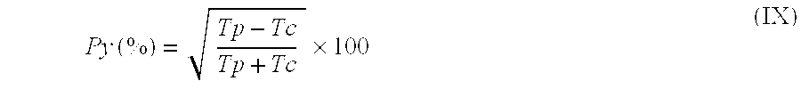 - the present inventors have earnestly studied in order to develop a polarizing plate enabling neutral white in the case of white display and neutral black in the case of black display, bright white display, and high-contrast display, and found that an iodine-type polarizing plate satisfying condition as described herein could provide the intended performance. That is, the iodine-type polarizing plate, which is a polarizing plate using iodine as the dichromatic substance, have a single transmittance of about 42.5% or more, a degree of polarization of about 99% or more, coefficients, calculated from a hue in the parallel state and a hue in the perpendicular state in L*a*b* color system, are within a range as described herein. The present invention is based on these findings.