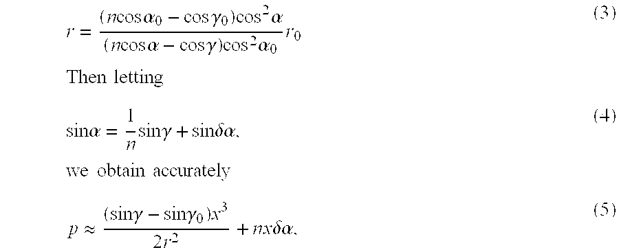 - the actual rays in practice are curved, because of diffraction, as shown for instance in FIG. 6, as is well known from the laws of Gaussian Optics.