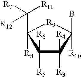 - 2′-amino or 2′-O-methyl nucleotides specifically 2′-amino or 2′-O-methyl nucleotides, and nucleotides containing a 2′-O or 4′-C methylene bridge.