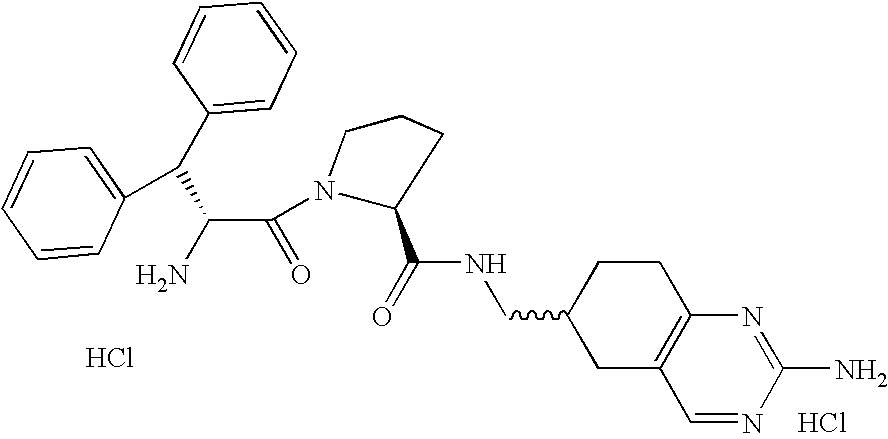 - LUHAGKPSIYKRAM-FKIMBDHASA-N tert-butyl n-[(2s)-1-[(2s)-2-[(2-amino-5,6,7,8-tetrahydroquinazolin-6-yl)carbamoyl]pyrrolidin-1-yl]-1-oxo-3,3-diphenylpropan-2-yl]carbamate Chemical compound C=1C=CC=CC=1C([C@H](NC(=O)OC(C)(C)C)C(=O)N1[C@@H](CCC1)C(=O)NC1CC2=CN=C(N)N=C2CC1)C1=CC=CC=C1 LUHAGKPSIYKRAM-FKIMBDHASA-N 0.000 claims description 4