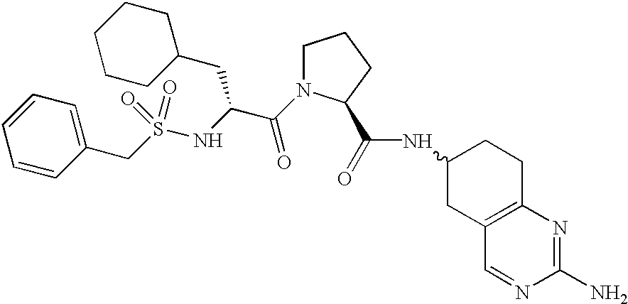 - KXWWDDCROVDWSS-VNCAGCHFSA-N (2s)-n-[(2-amino-5,6,7,8-tetrahydroquinazolin-6-yl)methyl]-1-[(2r)-2-(benzylsulfonylamino)-3-cyclohexylpropanoyl]pyrrolidine-2-carboxamide Chemical compound C([C@H](C(=O)N1CCC[C@H]1C(=O)NCC1CC2=CN=C(N=C2CC1)N)NS(=O)(=O)CC=1C=CC=CC=1)C1CCCCC1 KXWWDDCROVDWSS-VNCAGCHFSA-N 0.000 claims description 3
