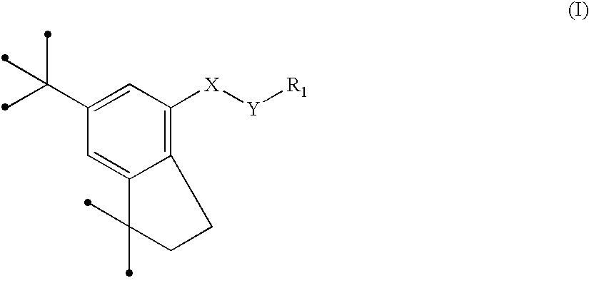 4-[1-[4-(6-tert-butyl-1,1-dimethylindanyl)]ethenyl]benzoic acid, [0059]