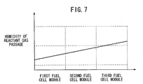 - Each of the fuel cell modules includes units of fuel cells, i.e., the fuel cell module is formed by stacking a plurality of membrane electrode assemblies and separators alternately.