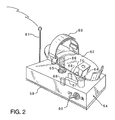 remote control 30 may also be substituted for a remote foot control as illustrated in FIG. 2. Here the foot operatedtransmitter 54 has ananti-skid tread pad 59 covering its bottom face, a power on-offswitch 60 connected with the internal 9 volt battery of the transmitter and a matchedantenna 61. Additionally, afoot treadle 62 preferably equipped with anadjustable foot strap 63 is held near its rear end on a universalswivel mount 64. Near its forward end, the foot treadle is connected to a depressable trolling motor on-offswitch actuator 65, biased to an off position by aspring 66. A side-to-side swinging actuator rod 67 on the swivel mount can engage selectively 68 and 69 of the left turn and right turn switches 40 and 41. The foot treadle is swung vertically by the foot of the user on theactuator cross axis element 70 of theuniversal swivel 64, and the foot treadle is swung horizontally with the actuator rod 67 on the vertical axis of theuniversal swivel 64. This is all in accordance with the prior art teachings of the aforesaid U.S. Pat. No. 4,614,900. - Of course, other remote controls and control systems may be substituted. Instead of RF frequency controllers, the remote controllers may be directly hard wired or the systems may operate by computer or by infrared or other optical transmissions.