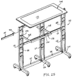 - the lower base portion 14 also includes a plurality of casters 36 , which may be fixed or rail type casters. However, as discussed above, other casters may be used such as swivel stem style casters with breaks and locks.