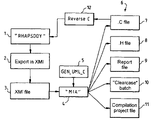 - the series 6 of files comprises: ⁇ .C>> files ( 7 ), ⁇ H>> )) files ( 8 ), a code generation report file ( 9 ) (as demanded by the aforesaid. Do specifications), a ⁇ batch >> file ( 10 ) in accordance with the ⁇ Clearcase>> specifications and compilation project files ( 11 ).