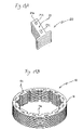 FIGS. 18A and 18B are an entire plan view and an entire side view illustrating a laminated stator core manufactured by the use of another method according to the present invention.