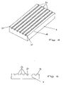 - B28B7/0082—Moulds characterised by special surfaces for producing a desired surface of a moulded article, e.g. profiled or polished moulding surfaces with surfaces for moulding parallel grooves or ribs