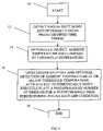 FIG. 1 , the basic steps of the inventive system and method is seen for clearing water, ice or other potential obstructions near the throttle plate of a throttle body via the ETC of a vehicle (not shown). As is well known, the ETC is programmed to operate the throttle which provides air to a vehicle engine in amounts dictated by the engine condition. The system and method starts at block and proceeds by detecting an “engine off” condition. When the engine is turned off, the ETC begins to shut down to a hibernation mode. Once the engine is off, a timer may be started to measure a predetermined time period as indicated atblock 12. The time period is chosen according to the expected stabilization soak time of the vehicle engine, i.e., the time period following engine shut off required for the throttle temperature to equalize to the outside temperature. It is during this time period that water may accumulate and then, if the ambient temperature is cold enough, freeze around the throttle plate, thereby creating an obstruction to the proper movement of the throttle plate once the engine is started again. The inventive method periodically “wakes up” the hibernating ECU one or more times which moves the throttle plate during this engine soak time to clear away any water and ice crystals (or other matter) forming around the throttle plate. - In this embodiment of the invention, during the predetermined time period, the ambient temperature or the temperature near the throttle plate is monitored as at