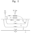 - Four dummy word lines D 1 to D 4 are disposed between adjacent P-well regions along a horizontal (or row, or word line) axis.