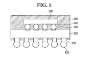 - the bumps 140 of the semiconductor chip 200 may be formed in areas corresponding to the connection pads 130 of the substrate 100 . That is, the semiconductor chip 200 on which the bumps 140 are formed may be mounted on the upper surface of the substrate 100 , and may be electrically connected to the substrate 100 through the bumps 140 .