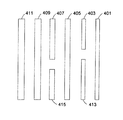 - FIG. 3 shows a plan view of the gate electrode layer of an example logic circuit with two different conductive segment line-widths, and with line-widths patterned with a resolution higher than used for the core pattern, in accordance with an example embodiment.
