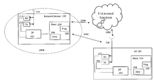 As shown in FIG. 2 communication between the network device 200 and the UE 100 can be made via one or more links 200C. Further, communication between the network device 200 and the UE 100 can be using another network such as the unlicensed spectrum as shown with links 200B and 200E. In addition, the UE 100 may communicate with the network device 200 using at least one of communication paths link 200E and/or 200C. Further, any of these links can be wired and/or wireless links, and any of these links can be backhaul type links Further, the communication paths link 200E and/or 200B can represent at least in part the unlicensed spectrum. The link 200E and/or 200B may include wireless access point(s) which may facilitate such a use in accordance with the exemplary embodiments of the invention.