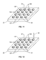 frame 18 and the integrated traces andpads 52 of theflexible substrate 12 are configured to contact each other upon contacting theframe 18 with theflexible substrate 12. In accordance with the present application, each opening 20 in theframe 18 is configured to expose one of the areas for forming one of the electro-optical module assemblies. The test structure even further includes alight source 54 located beneath theflexible substrate 12. Anoptical component holder 22 as defined above can be located between theflexible substrate 12 and thelight source 54. The text structure shown inFIG. 20 can be used to test each individual electro-optical module assembly that is formed. - While the present application has been particularly shown and described with respect to preferred embodiments thereof, it will be understood by those skilled in the art that the foregoing and other changes in forms and details may be made without departing from the spirit and scope of the present application. It is therefore intended that the present application not be limited to the exact forms and details described and illustrated, but fall within the scope of the appended claims.
