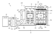 - An inlet of the cooling water flow path 13 a is coupled to a cooling water outlet of the chiller 14 via a pipe 21 a.