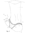 - the wearer's foot 12 For purposes of this application, we discuss various parts of the wearer's foot 12 , including not only the instep 14 (defined, for purposes of this application, the dorsum of the wearer's foot 12 which faces upwardly when the person is standing, including the area over the instep bone and the metatarsal bones, but excluding the phalanges) and the arch 16 (defined, for purposes of this application, the portion of the planum of the wearer's foot 12 located between the heel 20 and the ball 18 of the foot, the planum being the portion of the foot that faces downwardly when the person is standing).