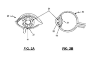 - FIGS. 2A and 2B are a front view and a cross-section side view of an eye, respectively, illustrating the placement of the intraocular pressure sensor in the eye of a subject;