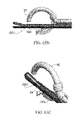 FIG. 46 illustrates the engagement of needle 32 with the supporting element 54. As described above, hook 321 of needle 32 engages with hooks 603 of support member 54 and encase suture 130.