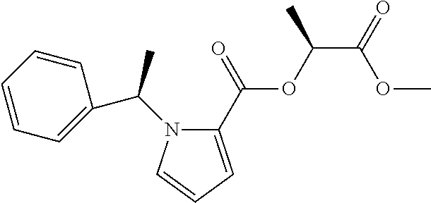 - WXHARZCMRHRSOI-ZIAGYGMSSA-N COC(=O)C[C@@H](C)OC(=O)C1=CC=CN1[C@H](C)C1=CC=CC=C1 Chemical compound COC(=O)C[C@@H](C)OC(=O)C1=CC=CN1[C@H](C)C1=CC=CC=C1 WXHARZCMRHRSOI-ZIAGYGMSSA-N 0.000 description 1