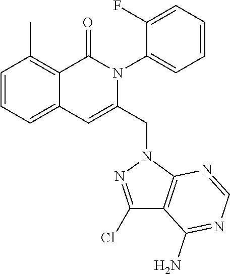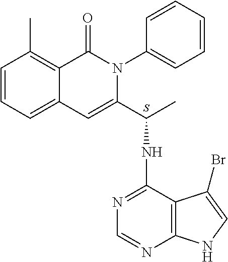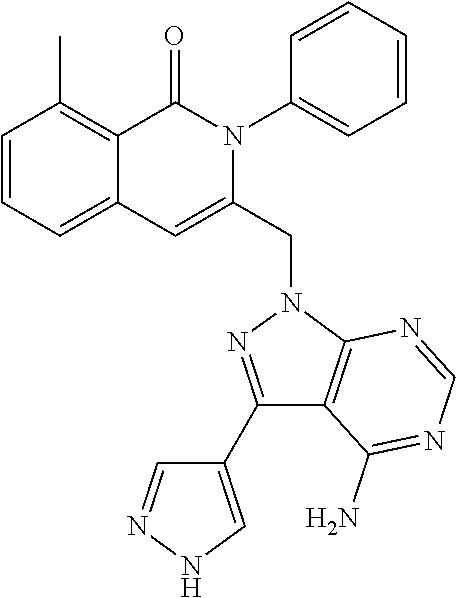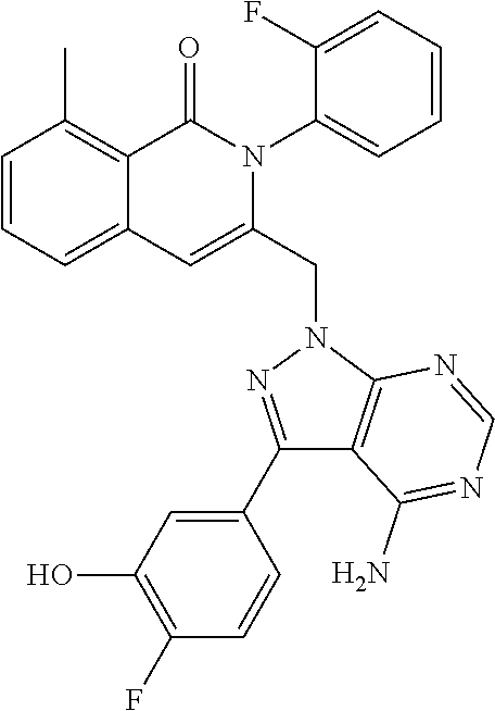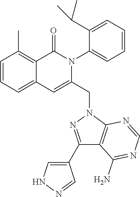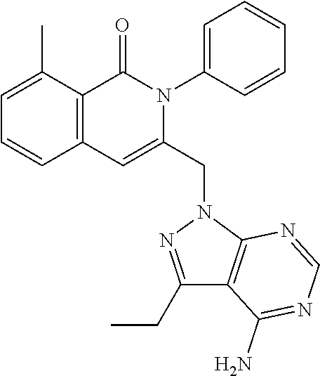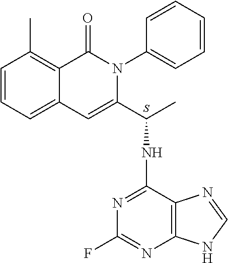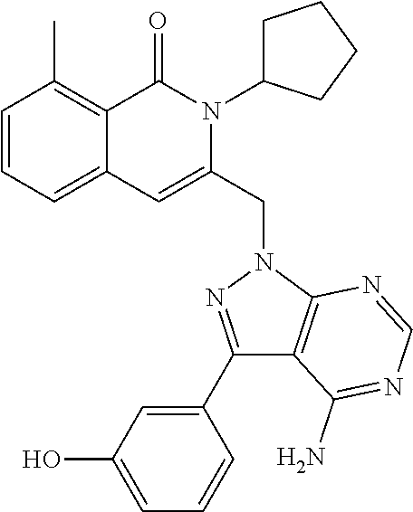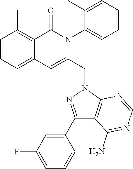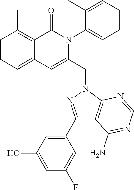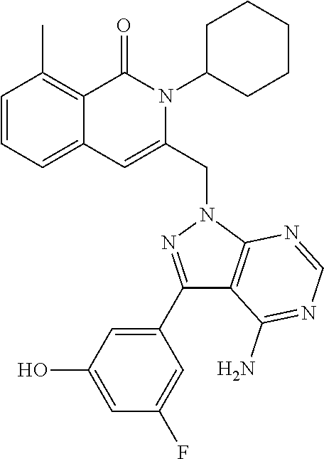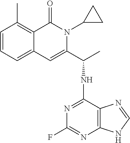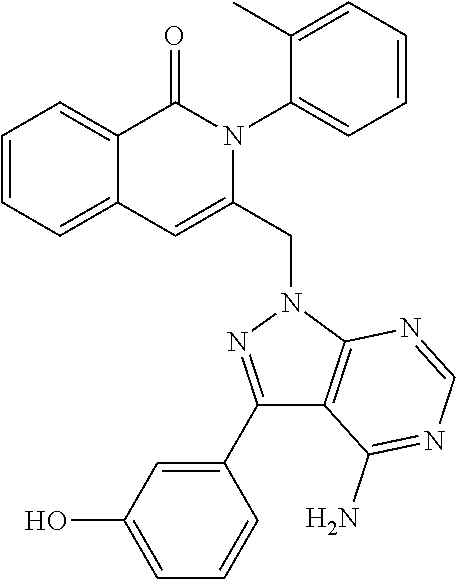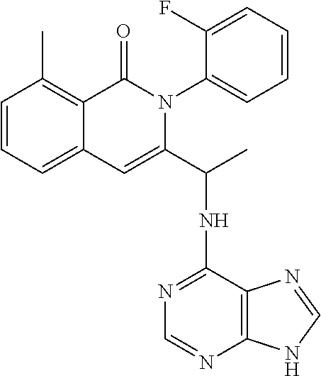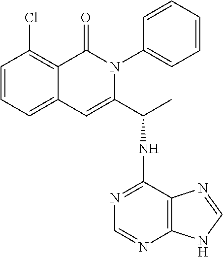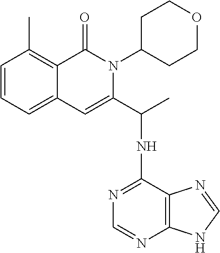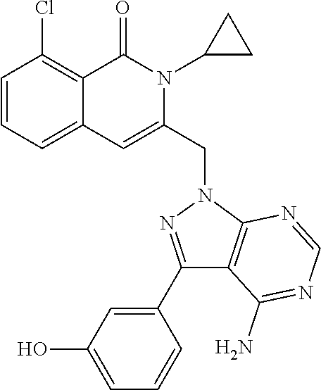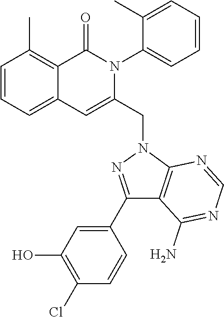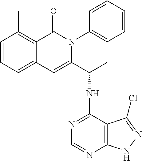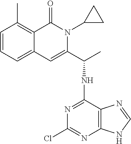 - SJVQHLPISAIATJ-ZDUSSCGKSA-N C[C@H](NC1=NC=NC2=C1N=CN2)C1=CC2=CC=CC(Cl)=C2C(=O)N1C1=CC=CC=C1 Chemical compound C[C@H](NC1=NC=NC2=C1N=CN2)C1=CC2=CC=CC(Cl)=C2C(=O)N1C1=CC=CC=C1 SJVQHLPISAIATJ-ZDUSSCGKSA-N 0.000 description 2