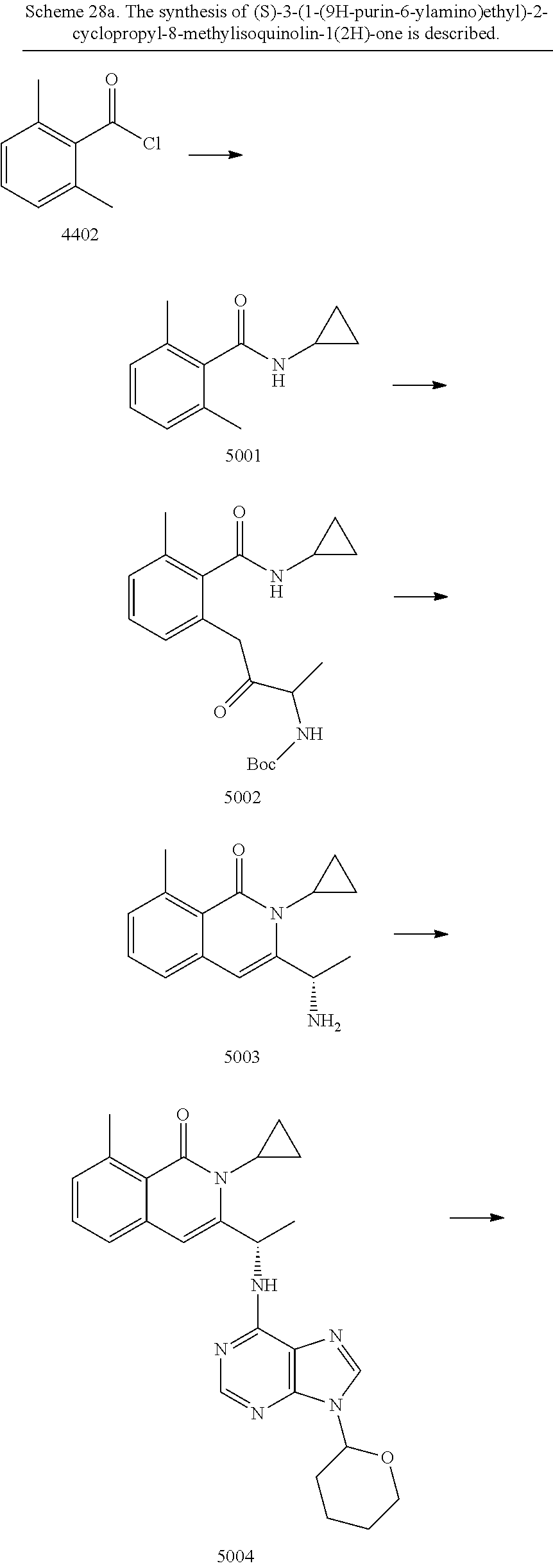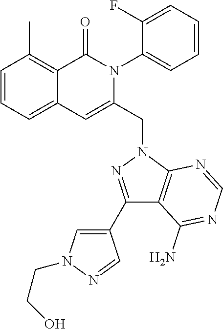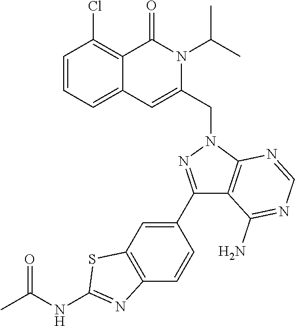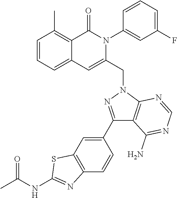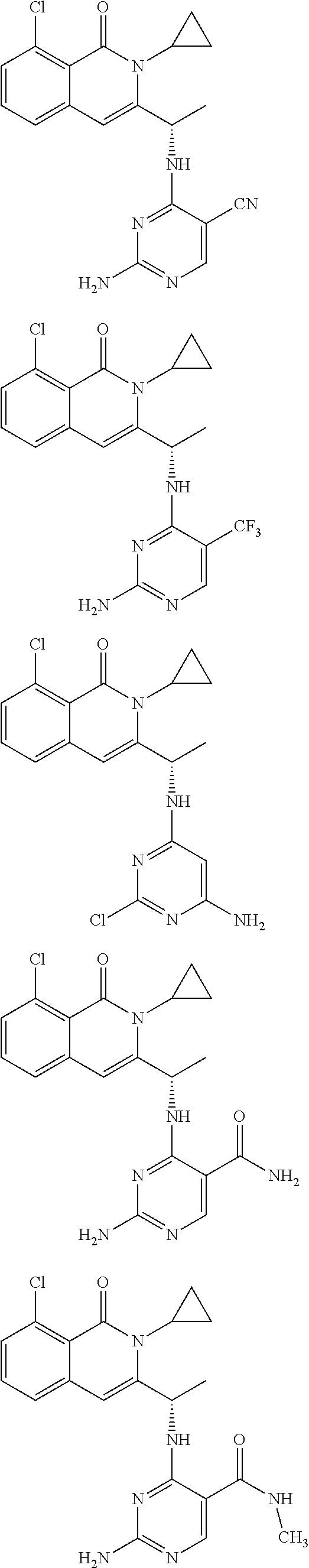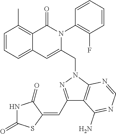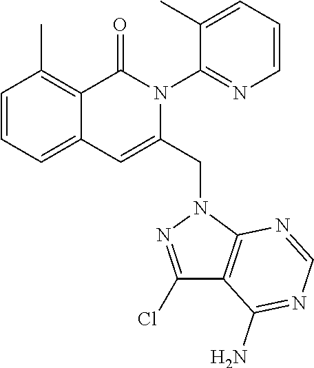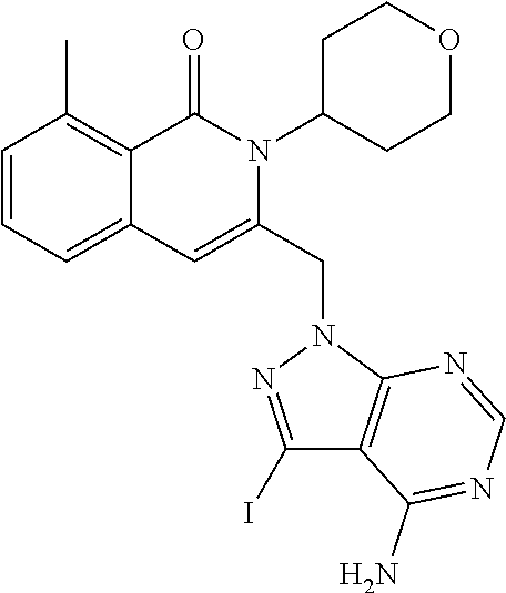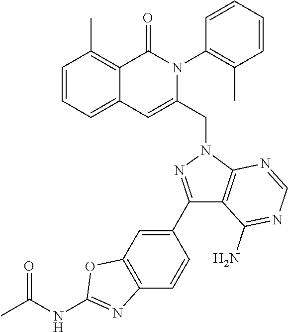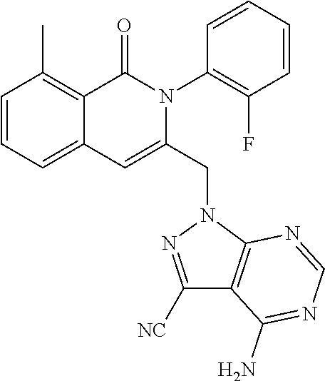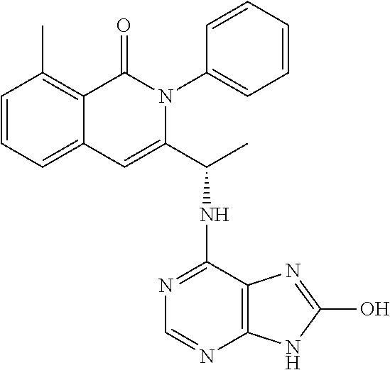- SJVQHLPISAIATJ-ZDUSSCGKSA-N C[C@H](NC1=NC=NC2=C1N=CN2)C1=CC2=CC=CC(Cl)=C2C(=O)N1C1=CC=CC=C1 Chemical compound C[C@H](NC1=NC=NC2=C1N=CN2)C1=CC2=CC=CC(Cl)=C2C(=O)N1C1=CC=CC=C1 SJVQHLPISAIATJ-ZDUSSCGKSA-N 0.000 description 2