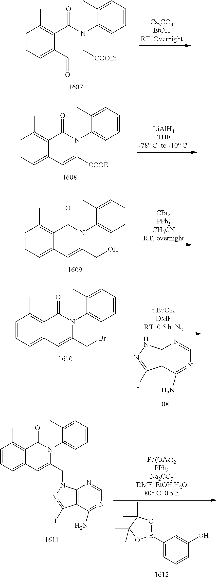 - FBNRPVIKSCEAPM-UHFFFAOYSA-N CC(C)N1C(=O)C2=CC=CC=C2C=C1CN1N=C(I)C2=C1N=CN=C2N Chemical compound CC(C)N1C(=O)C2=CC=CC=C2C=C1CN1N=C(I)C2=C1N=CN=C2N FBNRPVIKSCEAPM-UHFFFAOYSA-N 0.000 description 2