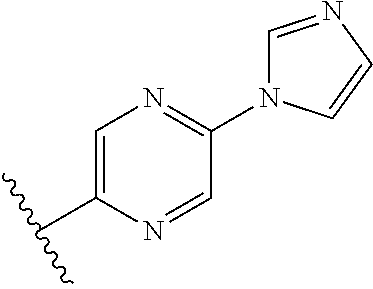 - GMELWCCRPSMEJU-UHFFFAOYSA-N CC(C)C1=CN=C(N2C=CN=C2)C=N1 Chemical compound CC(C)C1=CN=C(N2C=CN=C2)C=N1 GMELWCCRPSMEJU-UHFFFAOYSA-N 0.000 description 2