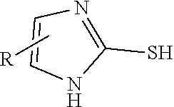 - QIDJKOJVUHRXPW-UHFFFAOYSA-N S=C1CCCN1.SC1=NC2=C(C=CC=C2)N1.SC1=NC=CN1 Chemical compound S=C1CCCN1.SC1=NC2=C(C=CC=C2)N1.SC1=NC=CN1 QIDJKOJVUHRXPW-UHFFFAOYSA-N 0.000 description 1