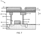 - An interconnect structure 26 is formed over the field-effect transistor 12 by middle-of-line processing and back-end-of-line processing, which includes formation of contacts, vias, and wiring that is coupled with the field-effect transistor 12 .