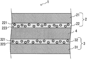 In the film portion 22, the total volume percentage of the organic compound phase 223 and the inorganic compound phase is 16 vol % to 84 vol % with respect to the total volume of the film portion 22. When the total volume percentage of the organic compound phase 223 and the inorganic compound phase is less than 16 vol % with respect to the total volume of the film portion 22, there is a case where the Si—O-Me bond is not sufficiently formed. When the volume percentage of organic compound phase 223 and the inorganic compound phase exceeds 84 vol % with respect to the total volume of the film portion 22, there is a case where the adhesion between the adhesive layer 4 and the film portion 22 decreases. The total volume percentage of the organic compound phase 223 and the inorganic compound phase is preferably 20 vol % or more and more preferably 30 vol % or more. The total volume percentage of the organic compound phase 223 and the inorganic compound phase is preferably 80 vol % or less and more preferably 70 vol % or less. In a case where the total volume percentage of the organic compound phase 223 and the inorganic compound phase is determined from the cross section of the film portion 22, the total area percentage of the organic compound phase 223 and the inorganic compound phase with respect to the cross sectional area of the film portion 22 is determined to be the total volume percentage of the organic compound phase 223 and the inorganic compound phase.