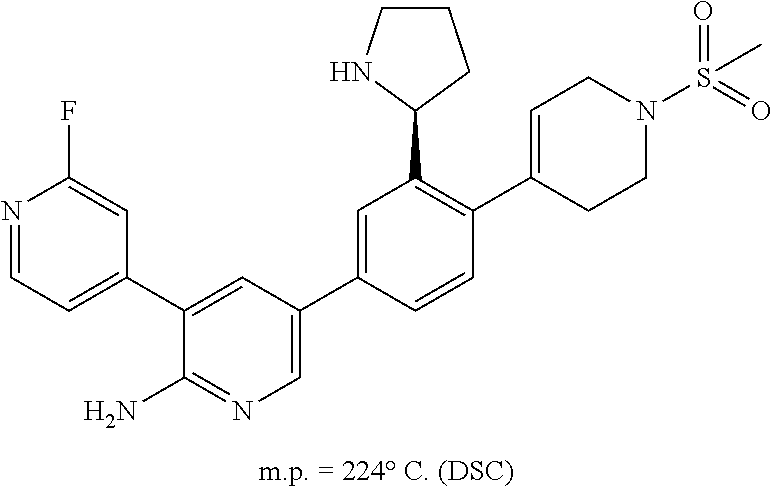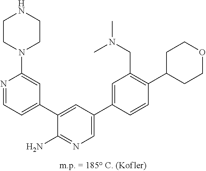 - AIIYMZXFHYSAFH-UHFFFAOYSA-N Nc1ncc(Br)cc1C1=CCNCC1 Chemical compound Nc1ncc(Br)cc1C1=CCNCC1 AIIYMZXFHYSAFH-UHFFFAOYSA-N 0.000 description 2