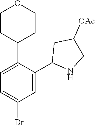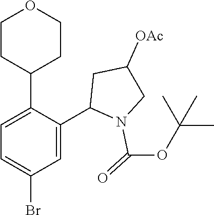 - CXWIOUBZNVNSNP-UHFFFAOYSA-N CC(=O)OC1CC(c2cc(Br)ccc2C2CCOCC2)N(C(=O)OC(C)(C)C)C1 Chemical compound CC(=O)OC1CC(c2cc(Br)ccc2C2CCOCC2)N(C(=O)OC(C)(C)C)C1 CXWIOUBZNVNSNP-UHFFFAOYSA-N 0.000 description 1
