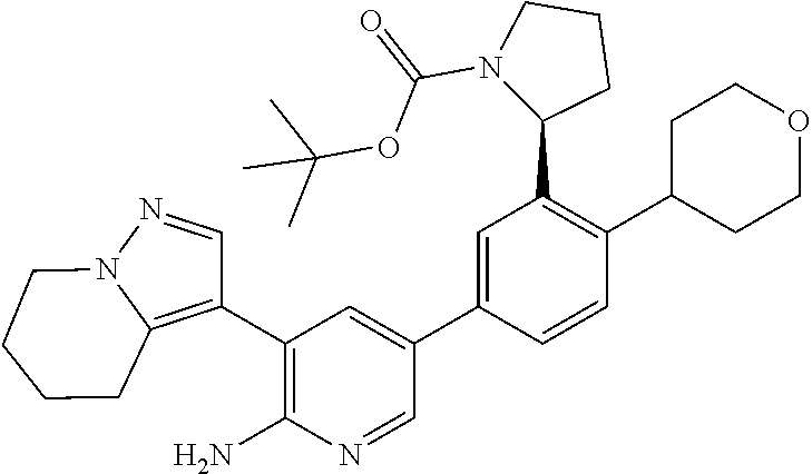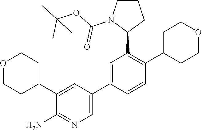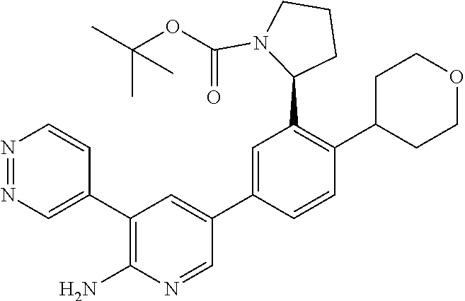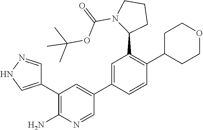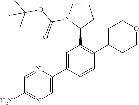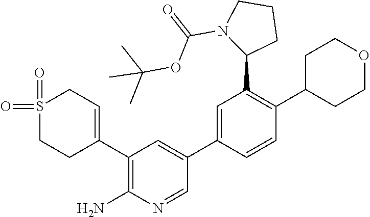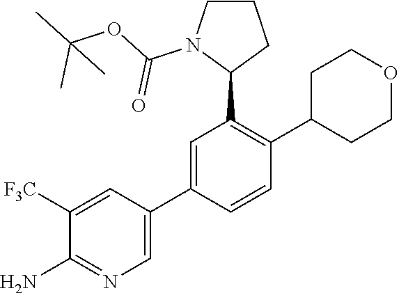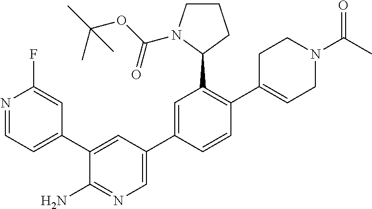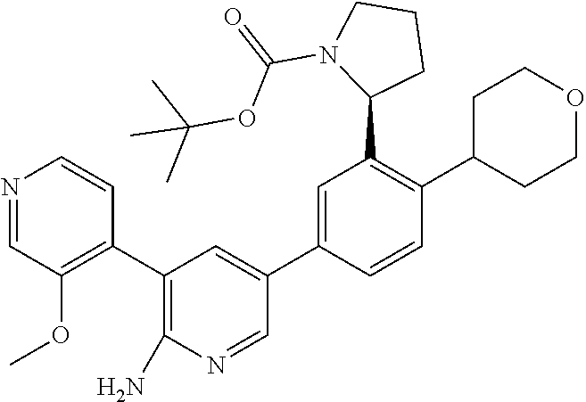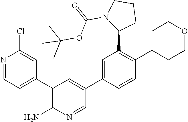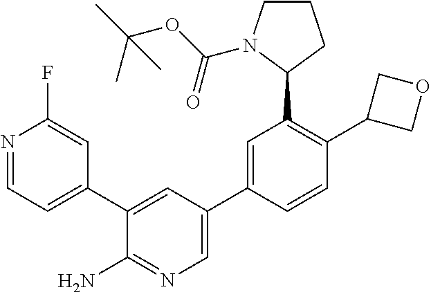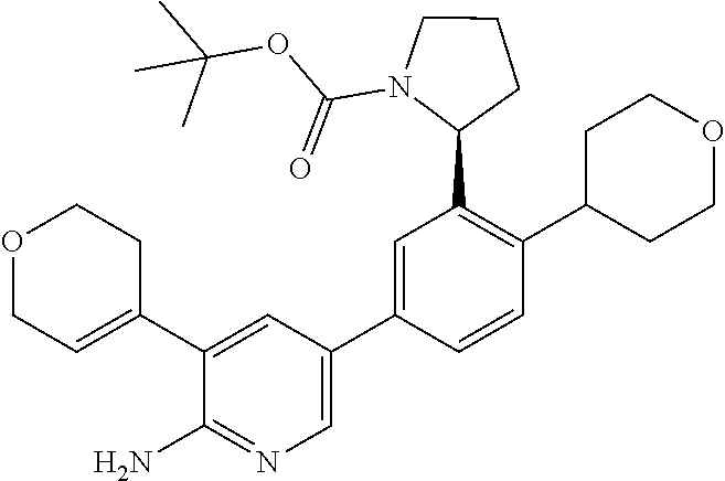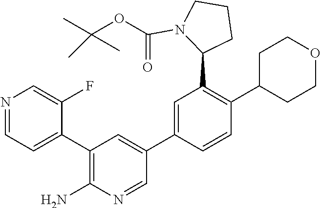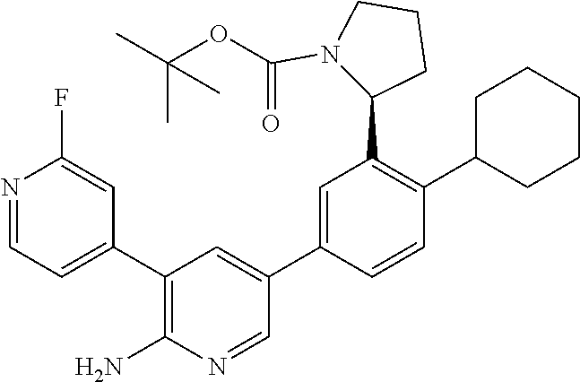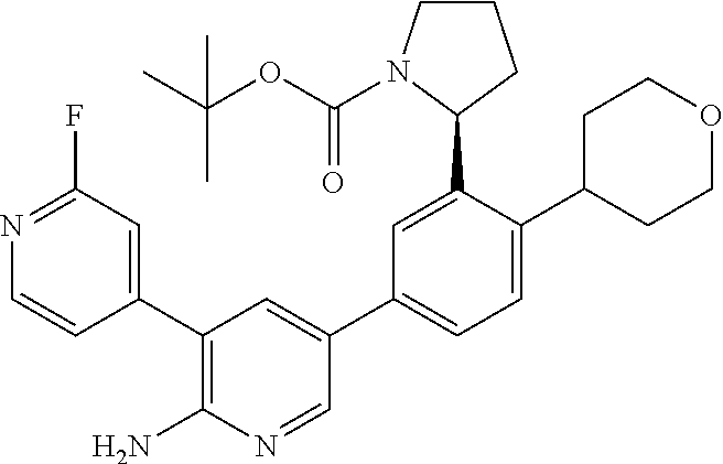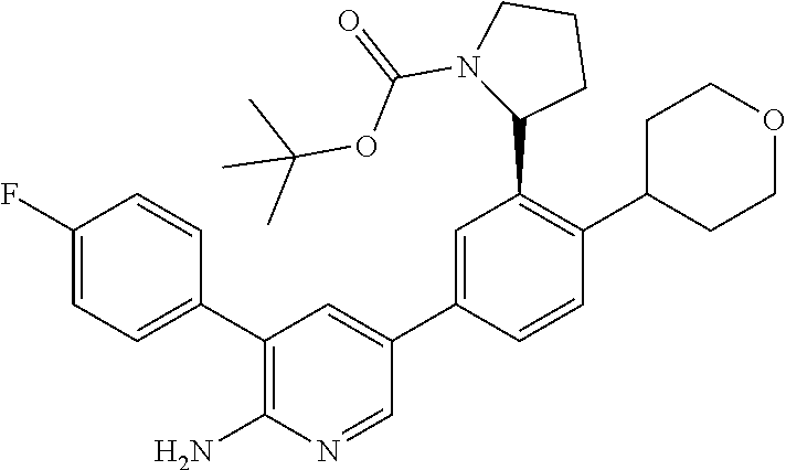 - IHOZPAQCHXGKPI-VWLOTQADSA-N CC(C)(C)OC(=O)N1CCC[C@H]1c1cc(-c2cnc(N)c(-c3ccnc(F)c3)c2)ccc1C1=CCOC1 Chemical compound CC(C)(C)OC(=O)N1CCC[C@H]1c1cc(-c2cnc(N)c(-c3ccnc(F)c3)c2)ccc1C1=CCOC1 IHOZPAQCHXGKPI-VWLOTQADSA-N 0.000 description 1
