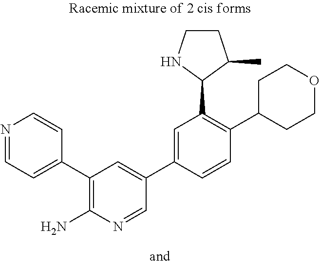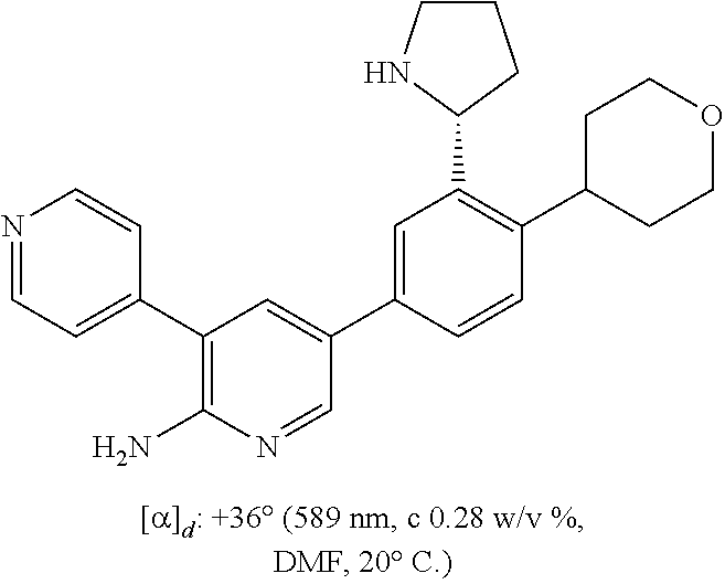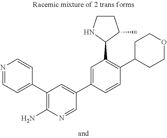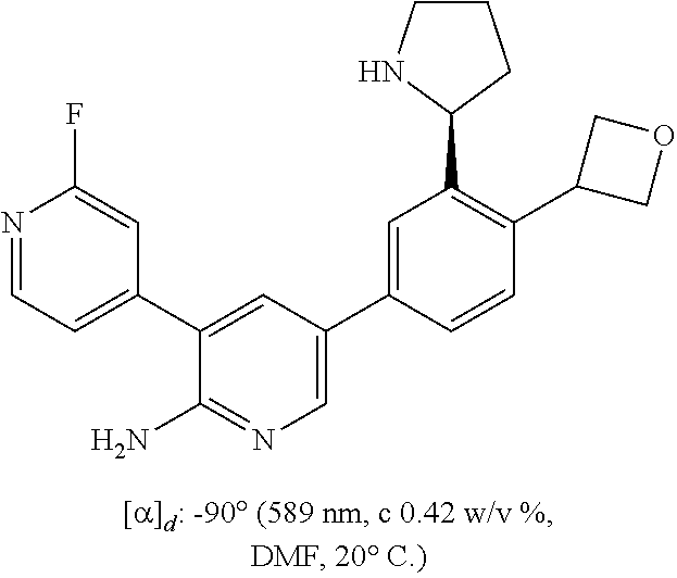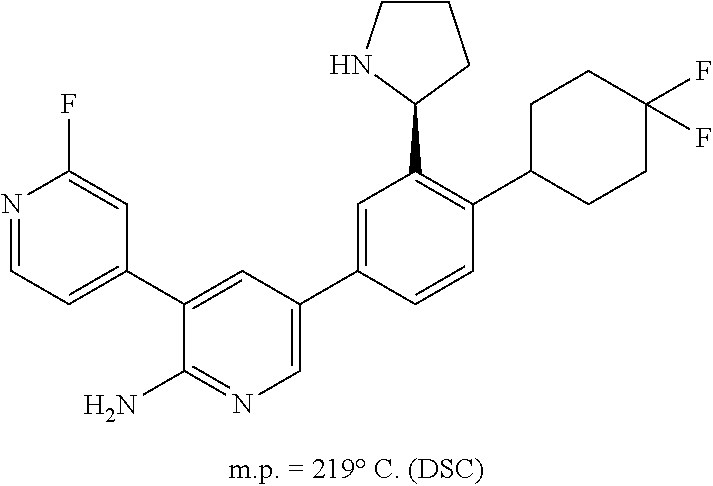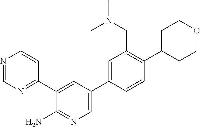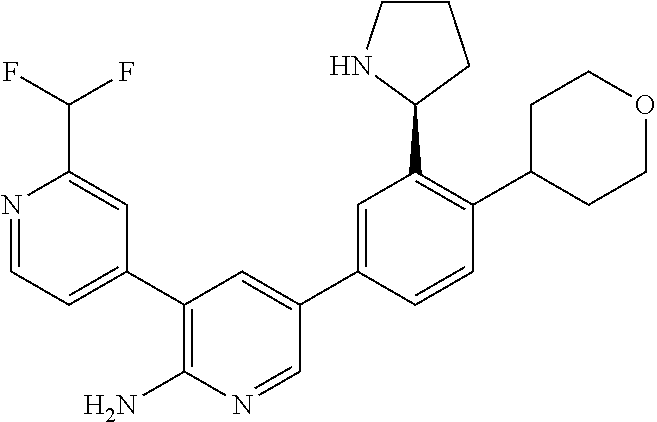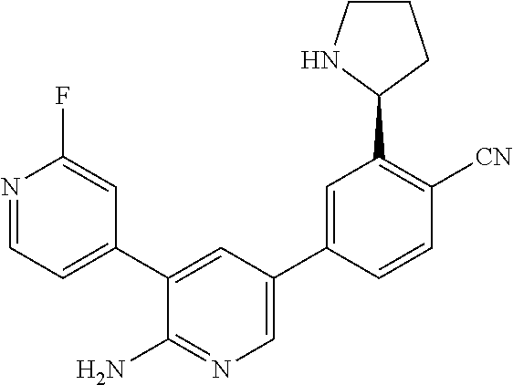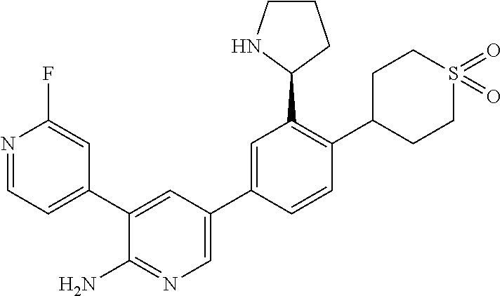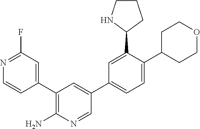 - CQYWFKZRGWZONR-QHCPKHFHSA-N Nc1ncc(-c2ccc(C3CCOCC3)c([C@@H]3CCCN3)c2)cc1-c1ccnc(F)c1 Chemical compound Nc1ncc(-c2ccc(C3CCOCC3)c([C@@H]3CCCN3)c2)cc1-c1ccnc(F)c1 CQYWFKZRGWZONR-QHCPKHFHSA-N 0.000 description 2