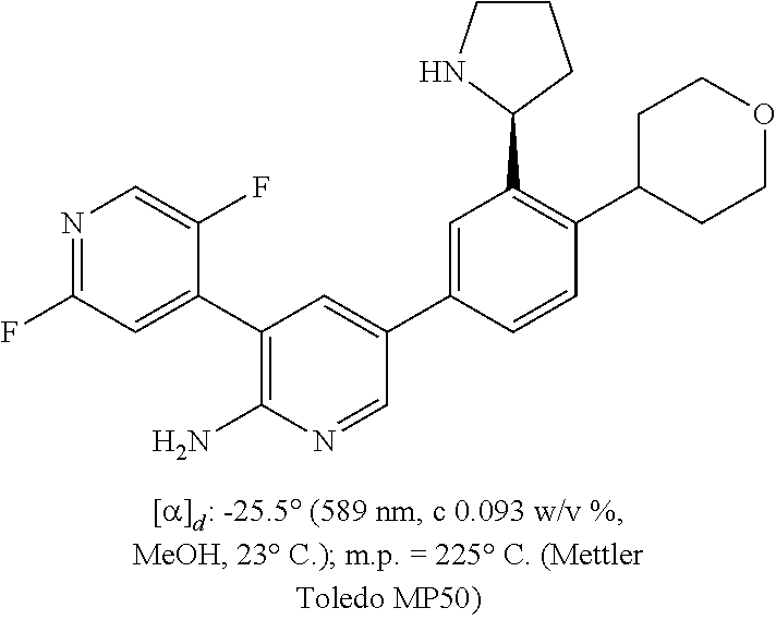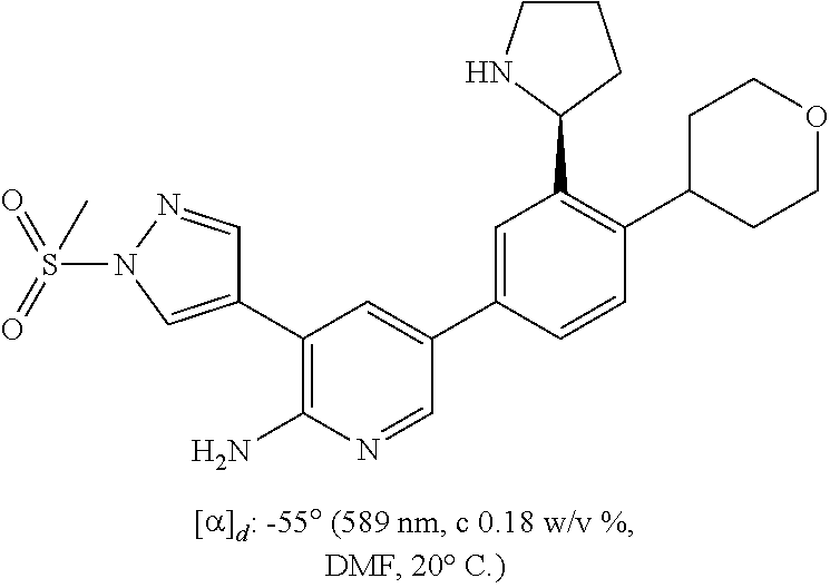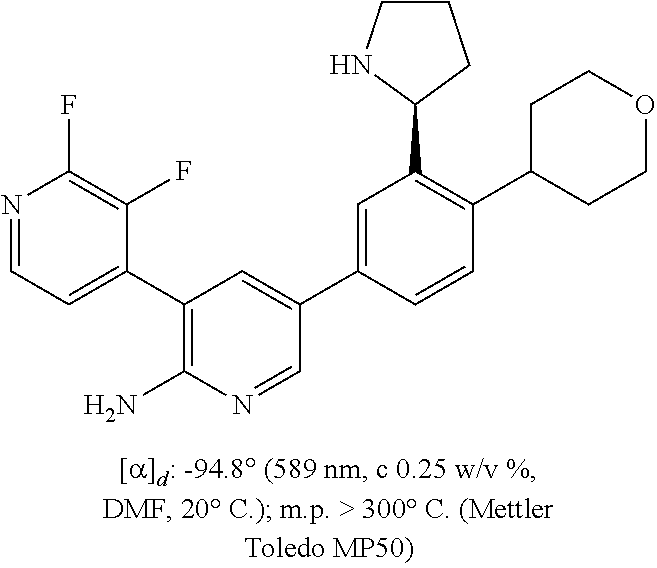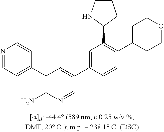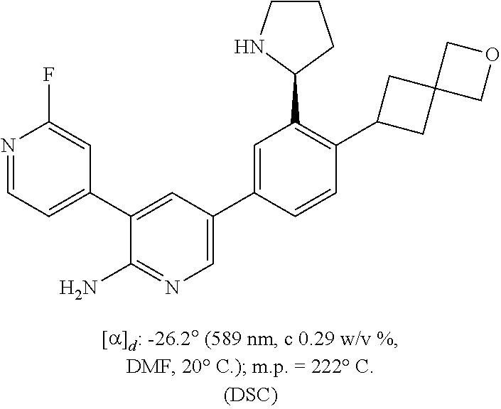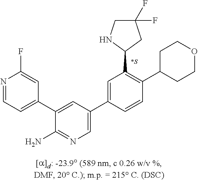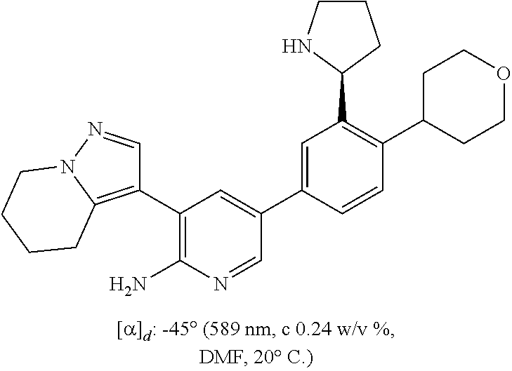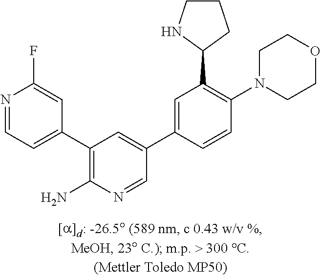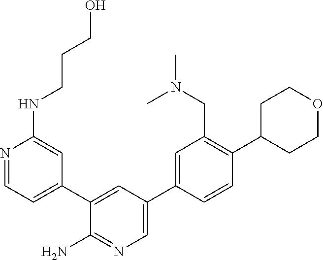 - CQYWFKZRGWZONR-QHCPKHFHSA-N Nc1ncc(-c2ccc(C3CCOCC3)c([C@@H]3CCCN3)c2)cc1-c1ccnc(F)c1 Chemical compound Nc1ncc(-c2ccc(C3CCOCC3)c([C@@H]3CCCN3)c2)cc1-c1ccnc(F)c1 CQYWFKZRGWZONR-QHCPKHFHSA-N 0.000 description 2