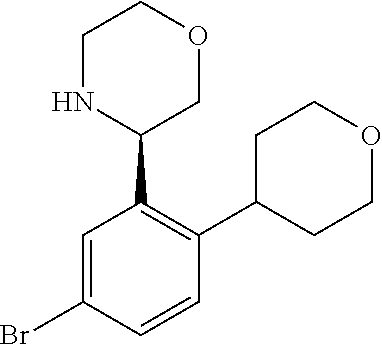 - YIYCNJRQYHILDC-HNNXBMFYSA-N Brc1ccc(C2CCOCC2)c([C@@H]2COCCN2)c1 Chemical compound Brc1ccc(C2CCOCC2)c([C@@H]2COCCN2)c1 YIYCNJRQYHILDC-HNNXBMFYSA-N 0.000 description 1