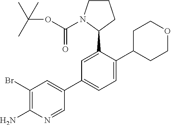 - PGEDNFLIIQVHFX-IBGZPJMESA-N Nc1ncc(-c2ccc(C3CCOCC3)c([C@@H]3CCCN3)c2)cc1Br Chemical compound Nc1ncc(-c2ccc(C3CCOCC3)c([C@@H]3CCCN3)c2)cc1Br PGEDNFLIIQVHFX-IBGZPJMESA-N 0.000 description 2