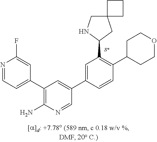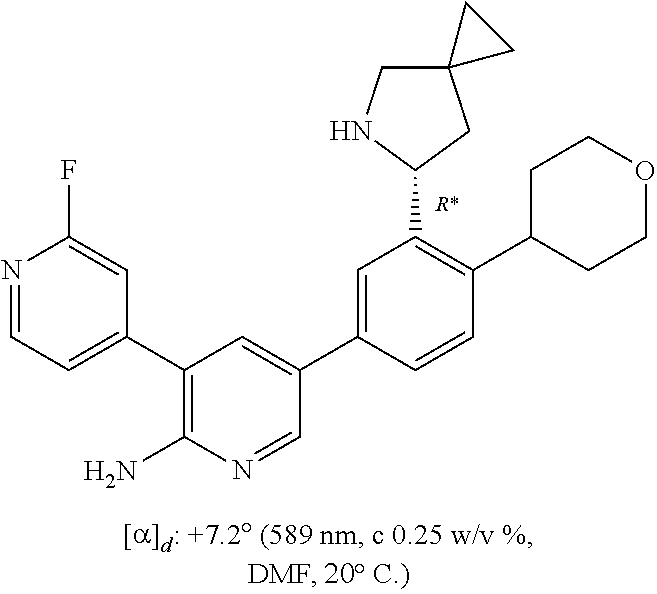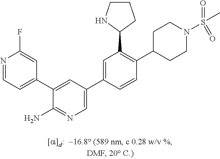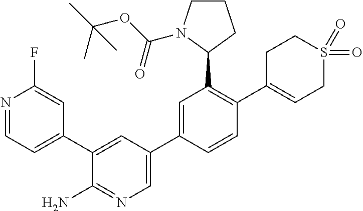 - NFKDHEZAAJSCMS-MHZLTWQESA-N CC(C)(C)OC(=O)N1CCC[C@H]1c1cc(-c2cnc(N)c(-c3ccnc(F)c3)c2)ccc1C1=CCN(S(C)(=O)=O)CC1 Chemical compound CC(C)(C)OC(=O)N1CCC[C@H]1c1cc(-c2cnc(N)c(-c3ccnc(F)c3)c2)ccc1C1=CCN(S(C)(=O)=O)CC1 NFKDHEZAAJSCMS-MHZLTWQESA-N 0.000 description 1