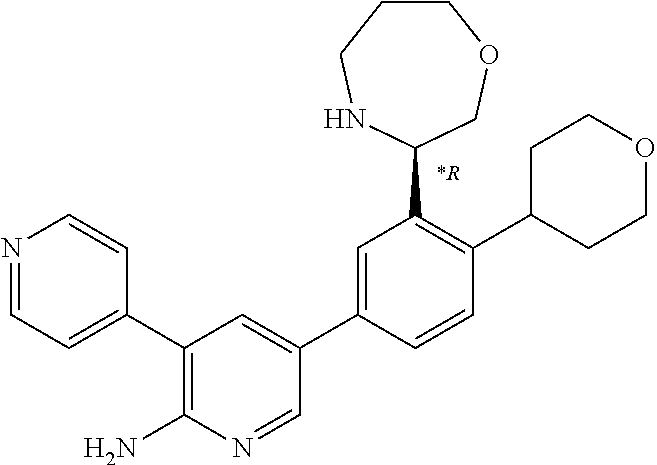 - MHPIVGXXEASZGF-AVBAWOQOSA-N *.C[C@H]1COC[C@@H](c2cc(-c3cnc(N)c(-c4ccncc4)c3)ccc2C2CCOCC2)N1.S Chemical compound *.C[C@H]1COC[C@@H](c2cc(-c3cnc(N)c(-c4ccncc4)c3)ccc2C2CCOCC2)N1.S MHPIVGXXEASZGF-AVBAWOQOSA-N 0.000 description 2