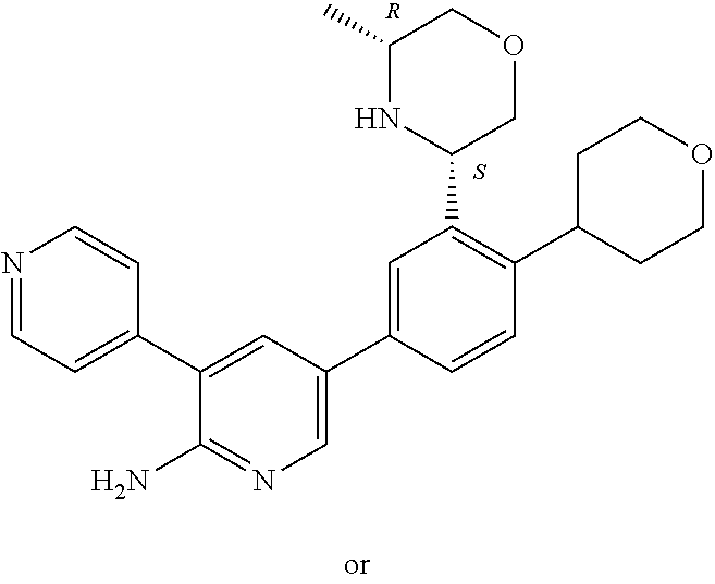 - MWSLOEAUJOINTG-NRFANRHFSA-N Cn1cc(-c2nc(-c3ccc(C4CCOCC4)c([C@@H]4COCCN4)c3)cnc2N)cn1 Chemical compound Cn1cc(-c2nc(-c3ccc(C4CCOCC4)c([C@@H]4COCCN4)c3)cnc2N)cn1 MWSLOEAUJOINTG-NRFANRHFSA-N 0.000 description 2