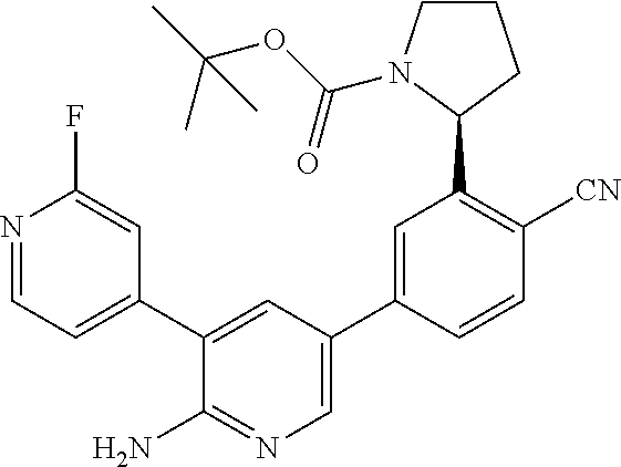 - MKYONFOXEFBHTE-QFIPXVFZSA-N CC(C)(C)OC(=O)N1CCC[C@H]1c1cc(-c2cnc(N)c(-c3ccnc(F)c3)c2)ccc1C#N Chemical compound CC(C)(C)OC(=O)N1CCC[C@H]1c1cc(-c2cnc(N)c(-c3ccnc(F)c3)c2)ccc1C#N MKYONFOXEFBHTE-QFIPXVFZSA-N 0.000 description 1