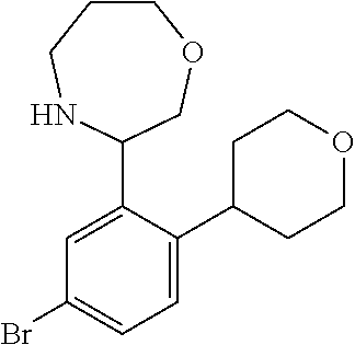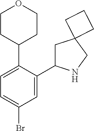 - TVRHYSVWDPRJKR-UHFFFAOYSA-N Brc1ccc(C2CCOCC2)c(C2CC3(CCC3)CN2)c1 Chemical compound Brc1ccc(C2CCOCC2)c(C2CC3(CCC3)CN2)c1 TVRHYSVWDPRJKR-UHFFFAOYSA-N 0.000 description 1