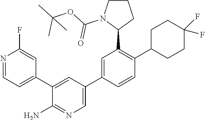 - AVZKRCPCAHGNMB-SANMLTNESA-N CC(C)(C)OC(=O)N1CCC[C@H]1c1cc(-c2cnc(N)c(-c3ccnc(F)c3)c2)ccc1C1=CCC(F)(F)CC1 Chemical compound CC(C)(C)OC(=O)N1CCC[C@H]1c1cc(-c2cnc(N)c(-c3ccnc(F)c3)c2)ccc1C1=CCC(F)(F)CC1 AVZKRCPCAHGNMB-SANMLTNESA-N 0.000 description 1